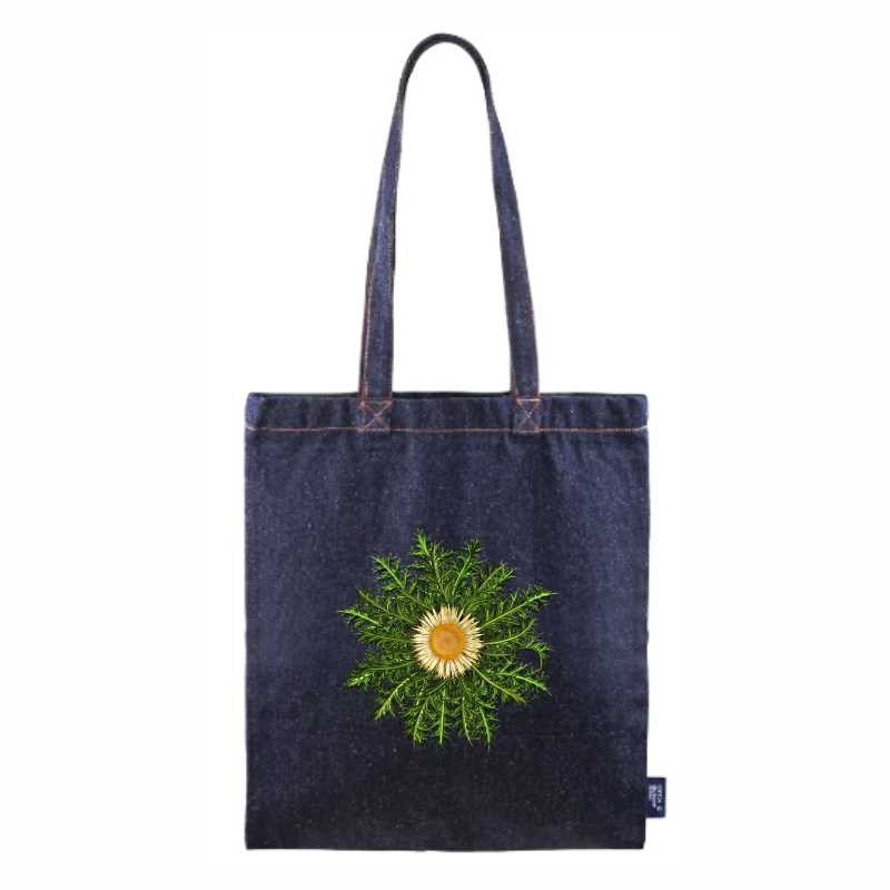 Bonita bolsa fabricada en algodón y denim reciclado de 240 gr/m² con asas largas.