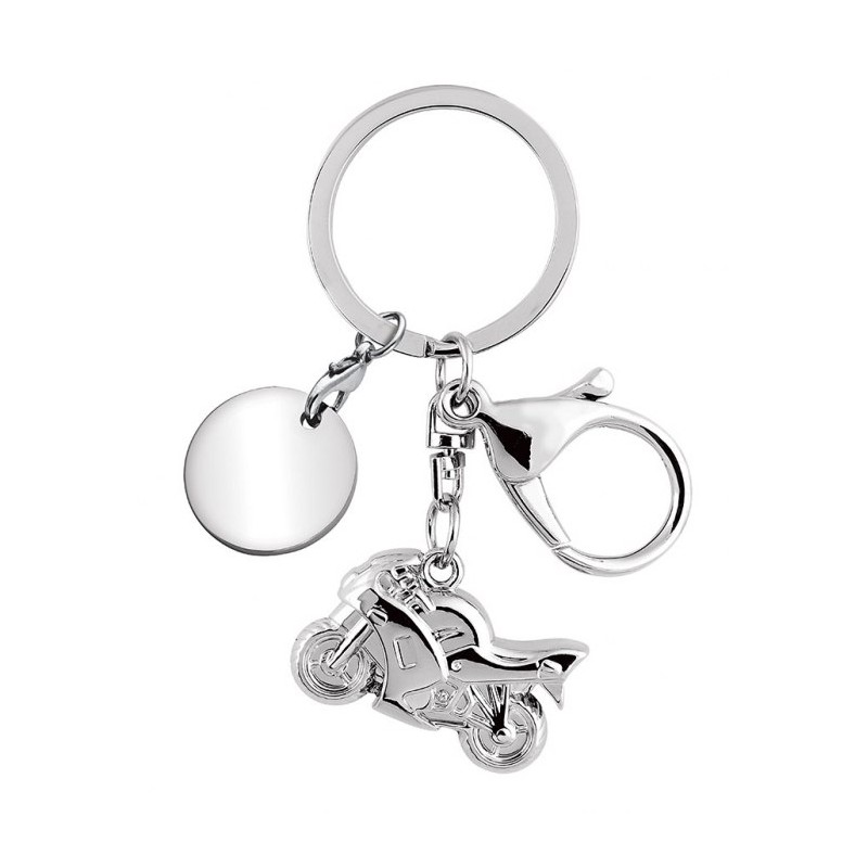 Llavero miniatura moto racing cromado con chapa personalizable