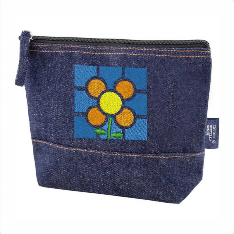 Bonito neceser de tela vaquera reciclada con baldosa de bilbao/flor efecto bordado